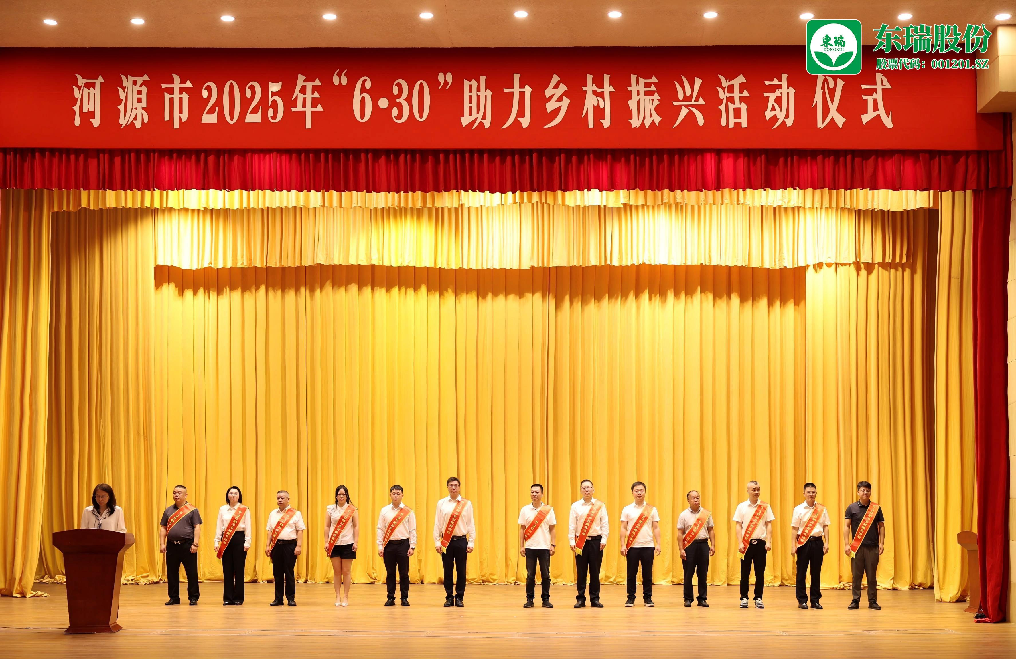 聚焦百千萬工程,踐行高質量發展。6月30日,河源市舉辦2025年“6·30”助力鄉村振興活動,市委副書記吳青川、常務副市長劉東豪、市委常委謝春艷等領導親切會見愛心企業家代表并出席活動儀式,為在2024年度河源市廣東扶貧濟困日活動中作出突出貢獻的企業(團體)授獎,東瑞股份榮獲2024年度“河源市廣東扶貧濟困萬綠杯”。
